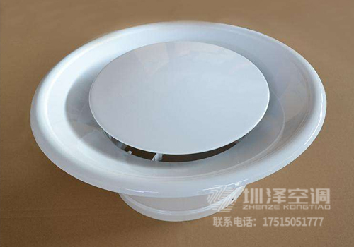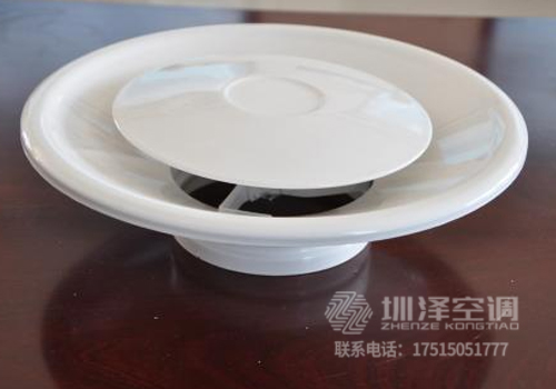 隨著人們對室內空間的舒適性、空氣質量、能源節約的重視,對空調系統的要求越來越高。散流器是空調系統的末端設備,直接將處理后的空氣送入房間中??諝饬鹘浬⒘髌鳟a生特定的速度場和溫度場,影響著房間的溫濕度參數、空調精度、氣流速度、空氣潔凈度和人的舒適度。因此散流器的射流效果是影響空調系統實際運行效果的重要因素。合理設計的散流器可以使房間空氣充分混合,解決溫度分層和空氣滯流的問題,改善室內工作環境同時也降低了建筑能耗。目前對可調散流器的送風優化角度、氣流組織特性研究比較多,但大多是針對方形散流器,對圓盤形散流器研究較少。圓盤形散流器的送風口徑大小對氣流的流型有調節作用。既可在夏季送冷風時送出水平流型(或貼附氣流),又可在冬季送熱風時送出下送流型(或向下射流)。故在散流器的外殼體上設置三個卡口,帶動扇葉上下活動的三個連桿可調節固定在三個卡口的位置上,形成散流器三個不同的送風開度。該散流器具有調節送風流型的功能,特別適合配置在單風道冷/熱送風風管系統上,提高了室內的空調效果,降低生產成本和節約安裝空間。