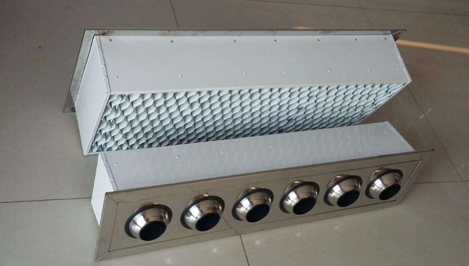 射流消聲風口的關鍵部件是射流部件消聲器,它采用聲波全反射臨界角、90°相位延遲頻率和喉部聲阻抗消聲機制。。當空氣通過噴氣部件消音體時,形成類似阻音狀態的氣流通道,使噪音波遭受更大的損失和過濾,同時氣流以較小的阻力和較高的速度送出,沒有二次噪音,消音效果顯著。根據截面形狀設置矩形、圓形和丁字(燈形)消音風口;根據不同的送風方式,可用于側面送風和頂部送風。